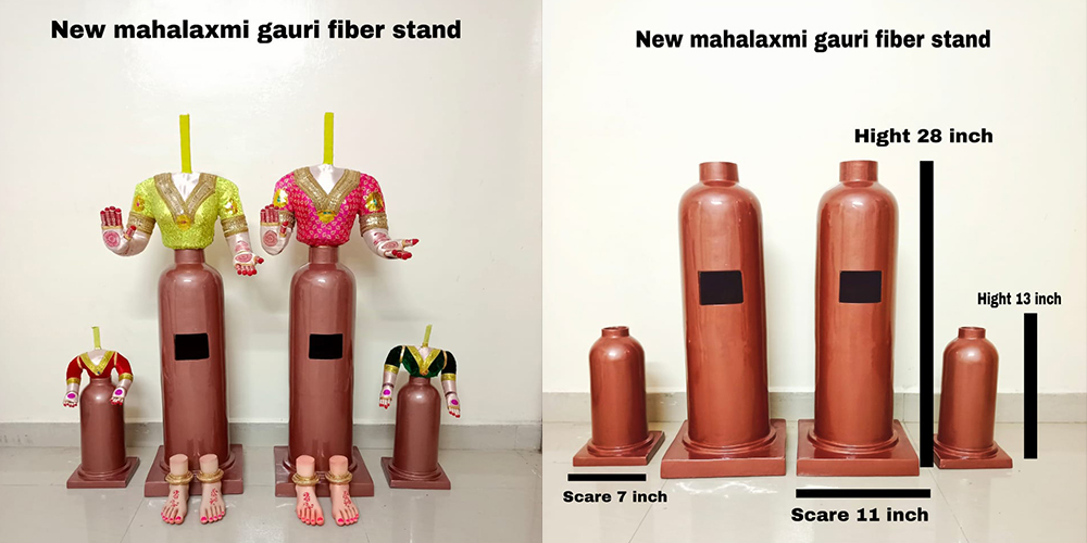 Manekar Arts proudly presents the Gauri Fiber Stand 4 Set — a beautifully crafted idol set symbolizing divine grace, purity, and tradition. Made from premium-quality fiber, each piece showcases exquisite detailing, lifelike expressions, and a smooth finish that highlights the serene beauty of Goddess Gauri.