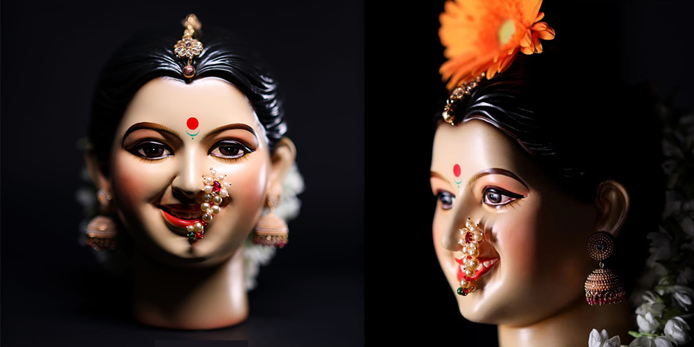 Manekar Arts proudly presents the Mahalaxmi Gauri POP Face — a divine creation symbolizing purity, grace, and prosperity. Crafted from high-quality Plaster of Paris (POP), this idol features lifelike expressions, intricate detailing, and a smooth finish that beautifully reflects the charm of Goddess Gauri and Goddess Mahalaxmi.